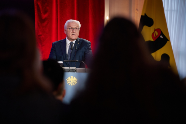 "Nie in der Geschichte unseres wiedervereinten Landes waren Demokratie und Freiheit so angegriffen. Bedroht durch einen russischen Aggressor, der unsere Friedensordnung zertrümmert hat, und gegen den wir uns schützen müssen. Und aktuell bedroht durch rechtsextreme Kräfte, die unsere Demokratie angreifen und an Zustimmung in der Bevölkerung gewinnen. Wir müssen handeln. Wir können handeln! Unsere Demokratie ist nicht dazu verurteilt, sich auszuliefern! Die Demokratie kann sich wehren!"