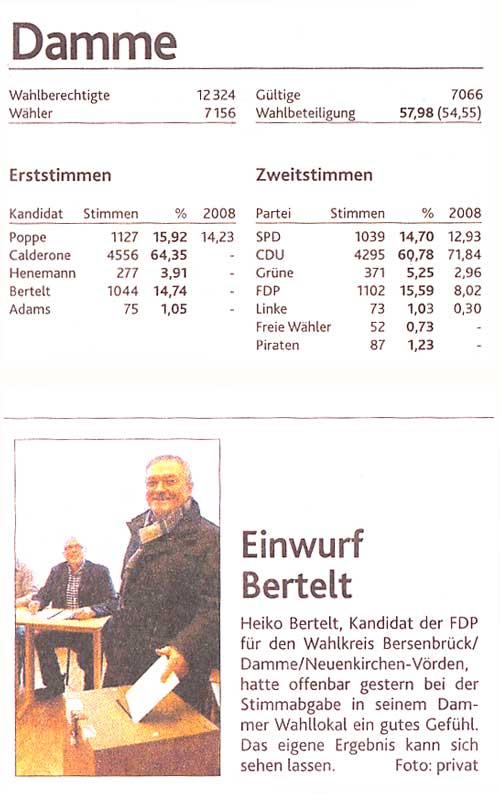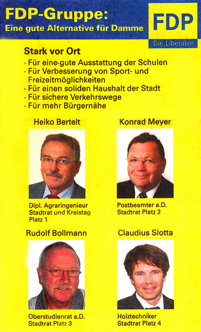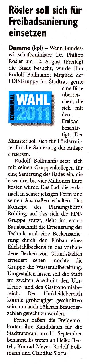 Pressemitteilung der FDP-Gruppe in Damme 1.9.2011