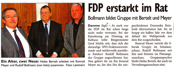 Pressemitteilung der FDP-Gruppe in Damme