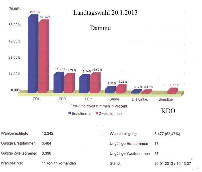 Damme bleibt fast alles beim Alten. Die CDU verliert zwar fünf Prozent,