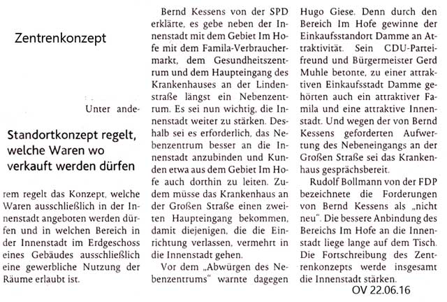 Die Geschäfte und Märkte -um die Innenstadt herum angesiedelt-, sollen sich weiterentwickeln, aber dürfen die Dammer City in ihrem Bestand nicht gefährden.