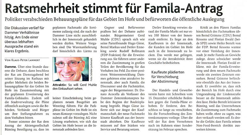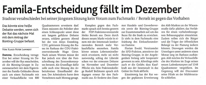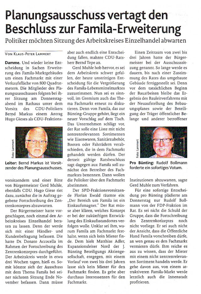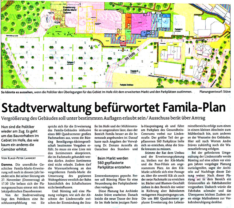 | Seit Jahr und Tag ist die Familaerweiterung in Damme ein unendliches Thema. |