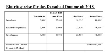 Der Förderverein Freibad Damme e. V. möchte in der kommenden Badesaison jeden Dienstag in der Zeit von 20.30 Uhr bis 21.30 Uhr das Freibad nur für Fördervereins-Mitglieder mit Jahreskarte öffnen. |