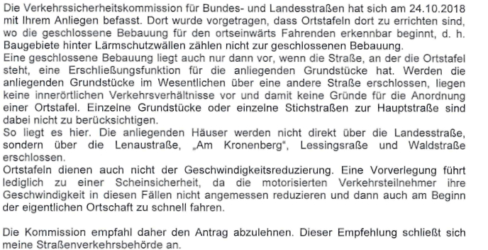 Auszug aus dem Antwortschreiben des Landkreises vom 24.10.2018 |