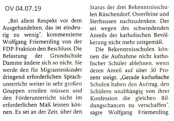 ...Mit dem jüngsten Beschluss des Dammer Stadtrates (ist) keines der anstehenden Probleme gelöst, sondern angesichts des allgemein festgestellten Minimalkonsens‘ nur aufgeschoben. Das heißt: Man wird sich in relativ kurzem Zeitraum mit dieser Angelegenheit erneut befassen müssen. Fazit: Der jüngst gefasste Stadtratsbeschluss ist völlig unzureichend... weiter