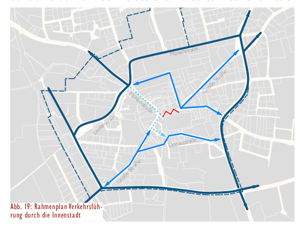 | In der Lindenstr. steigt die Verkehrsbelastung im südlichen Abschnitt auf über 13.000 Kfz/24h. Dies wird zu Lasten der Leistungsfähigkeit auf dem Abschnitt gehen. Insbesondere das Einbiegen wird bei dieser Verkehrsbelastung zu hohen Wartezeiten und deshalb letztendlich ebenfalls zu einem höheren Sicherheitsrisiko führen. | Als weiterer Nachteil ist anzuführen, dass durch die Maßnahme die Erreichbarkeit der Innenstadt mit dem Kfz über die Große Str. erschwert würde und Umwege entstehen würden. |