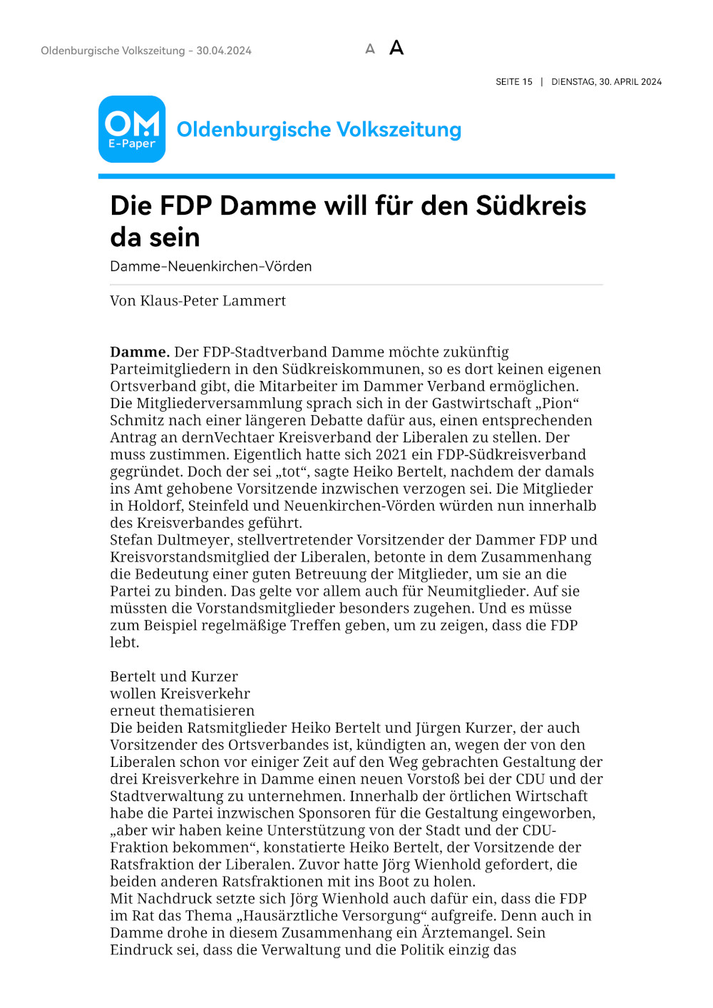 "Die FDP Damme will für den Südkreis da sein"
