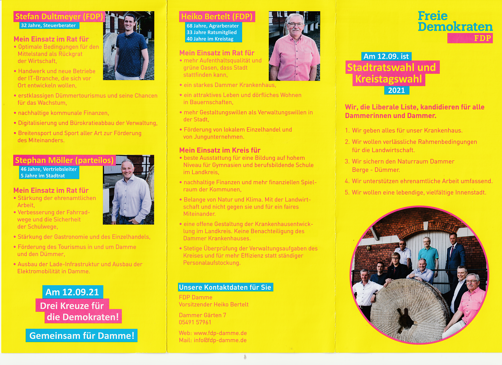 IBAN: DE97 2806 1679 0007 88400 00 FDP Volksbank Dammer